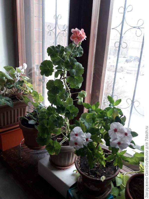 2 — пеларгония зональная (герань) и катарантус (барвинок розовый).