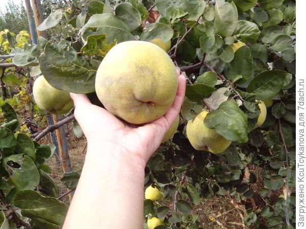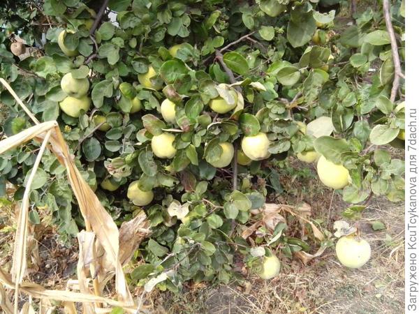 Для себя поняла, что дерево айвы (оно родом из молдавии) нам будет более, чем достаточно, уж очень крупные плоды на ней у нас, взвешивали осенью, то в среднем были по 500-620 грамм. Единственное жалко, что ветки не выдерживают даже под опорами и очень сильно к земле свисают, и плодов много осыпается. А вот кустик этот удалим, не такой он уж и красивый, если оставлять для декора.