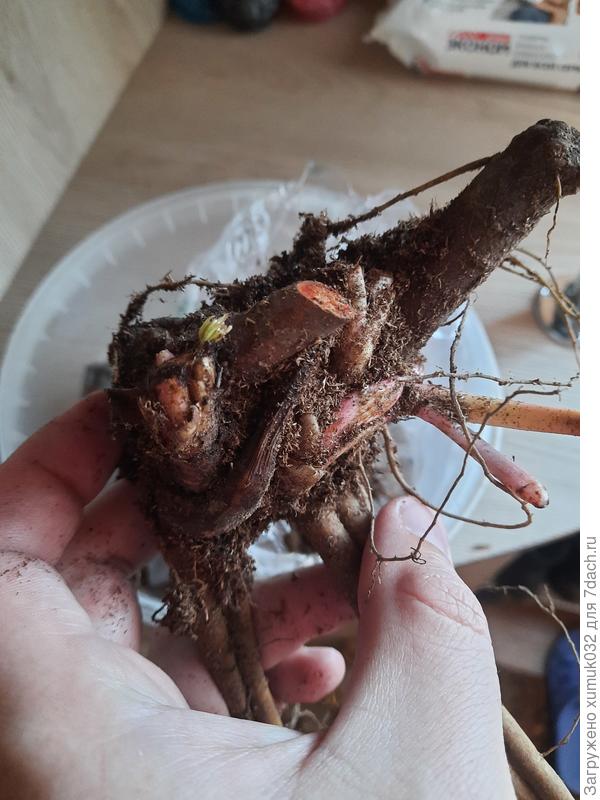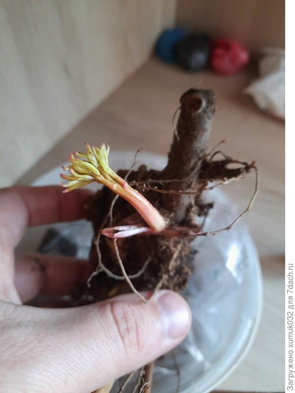 Кстати говоря, сегодня получил посылку с «компенсационным» пионом. Очень даже бодрое и крепкое корневище с ростками.