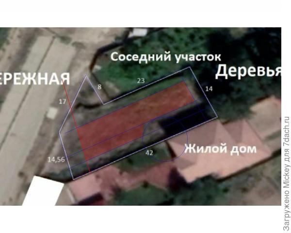 Тут можно заметить перепад высоты вниз от набережной к участку