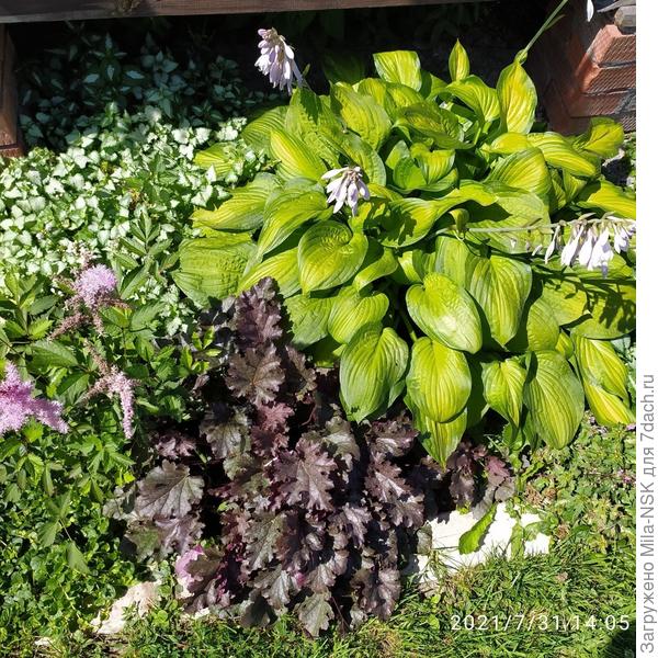 Это еще через год, в июле 2019 г. Хосты еще маленькие, зато гейхеры бушуют!