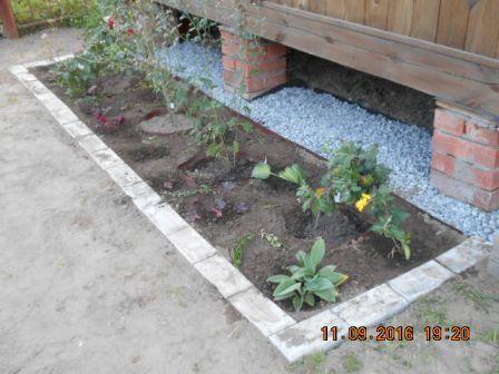 В общем, было решено переделать его, отсадив тысячелистник, хризантему (выжила только одна) и гайлардию в другие места. А вместо них посадить сюда другие растюхи: добавила хосты, лилейник, нарциссы и другую мелочь.
