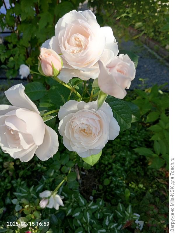 Вот что значит погода! Летом она белая, быстро раскрывается полностью, показывает серединку. А сейчас нежно кремовая с розовинкой в серединке. Вся на солнце светится.