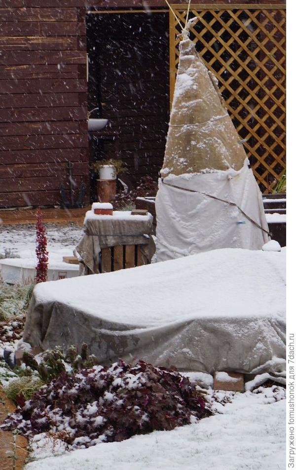 Конец октября, я только начала готовить розы к укрытию (оборвала листья, связала плети), но ещё не укрывала, температура установилась...