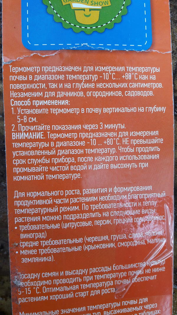 Огурцы можно высаживать! Вот такая табличка прилагалась к почвенному термометру.