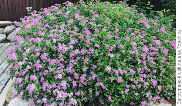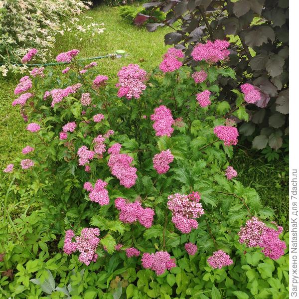 Антонио Ватерер у меня живет уже года три- четыре, но пока не нарастила куст, т.к. все время пересаживаю. Но спирея крепкая, выносливая. Все пересадки ей нипочем. Впрочем, все спиреи такие)) Вот только цветы у нее не малиновые, а розовые. Может, солнца ей недостаточно… Но больше пересаживать уже не буду))
