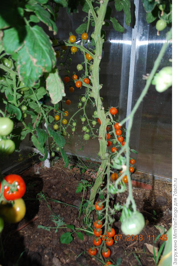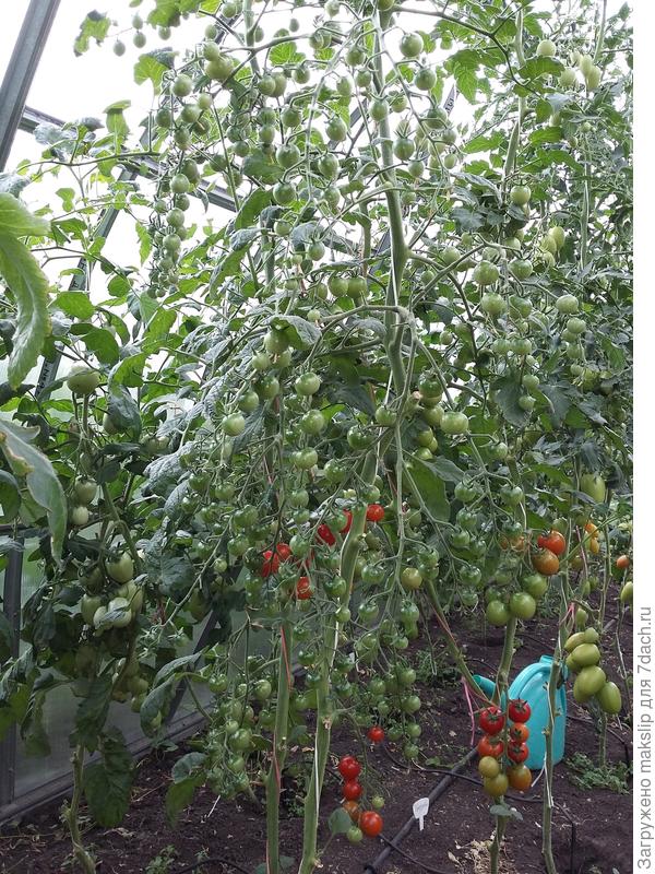 Сегодня хочу показать черри Лиза. Я формировала в один стебель, на следующий год оставлю один пасынок. На вкус сладкие. Вторая кисть (начинается с двух желтых помидорчиков) не только сложная, а суперсложная. На всякий случай...