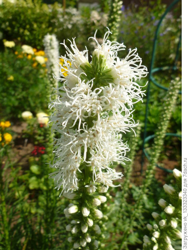 5. Белые сорта лиатрис дополнят композицию белого сада или снизят градус в «горячем» цветнике с красными, оранжевыми или желтыми цветами.