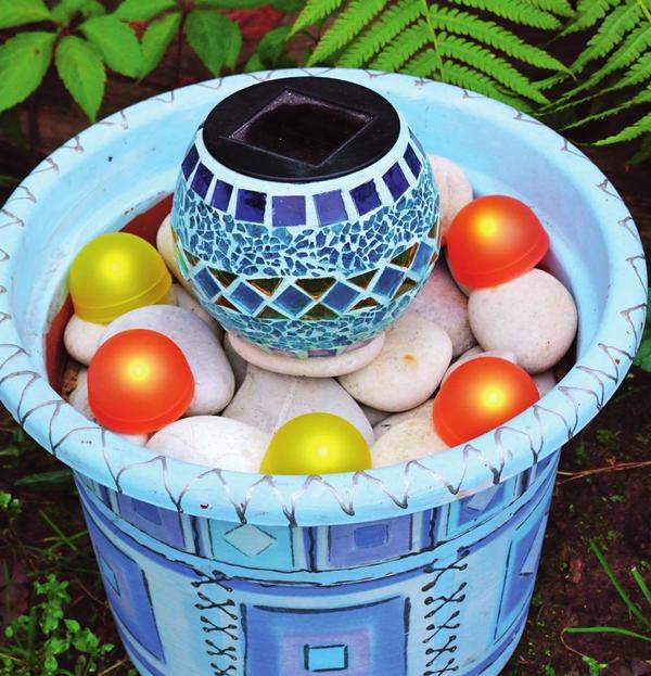 Затем красиво расставьте светильники, которые не предусматривают крепление в грунте.