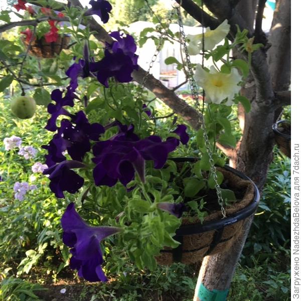Наиболее удобными для выращивания оказались подвесные кашпо, которые на время дождливой погоды были перенесены в теплицу, а потом вынесены на улицу.