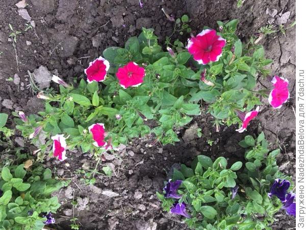 В июле наконец-то установилась теплая и сухая погода. Грядка с петуньями «ожила» и порадовала своими красками.