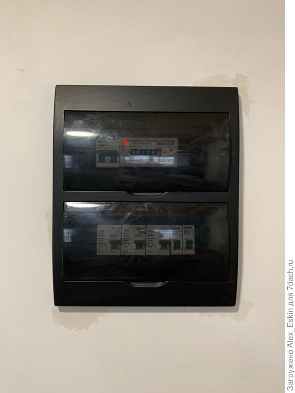 ).Нижний включатель — с диммером — для потолочного светильника-люстры. Нам был нужен разный свет (не только интимный...), в т. ч. и яркий — комната отдыха в бане у нас иногда используется в весьма экзотическом качестве. Например, этим летом сын использовал её как рабочий кабинет (во время изоляции сбежал из Москвы и — на трёх языках проводил видеоконференции с разными частями света...). А для работы, разумеется, иногда бывает нужен свет достаточный