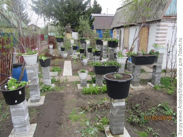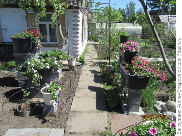 Но до того, как цветы приобретут вид пышного куста, долго придется любоваться на ведра. Не спорю, если участок небольшой, а вазонов надо много, как у Вас, то это вариант. Но не для меня. У меня другая цель — чтобы сад выглядел красиво и до начала пышного цветения. Ведра, тазы и шины, в их первозданном виде, конечно, сад не украсят. Поэтому я и переделала шину в вазон. Он и по размеру меня устраивает, можно посадить несколько разных растений. Мне кажется, он достойно смотрится и без цветов в саду. Вы бы заменили его большим ведром?