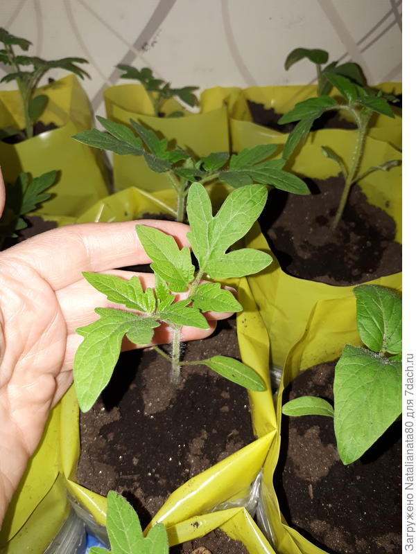 23 февраля посеял семена индетерминантых томатов в готовый грунт «Агроном». Выращиваю в комнате под люминесцентными лампами мощностью 72 квт, температура примерно 25 градусов. Но листья становятся...