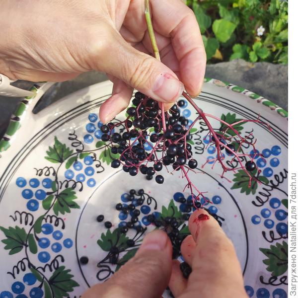 Черная бузина – невероятно ценное растение. Взять хотя бы сироп из цветков черной бузины — это ли не вкуснятина? – его просто обожают дети. И он тоже полезен для здоровья. Ягоды и цветки можно посушить и добавить в травяной чай (типа того, что я делала в прошлом году). В Викторианской Англии из черной бузины делали вкусное бузинное вино (кстати, и сейчас делают!). Не буду долго распространяться по поводу этого чудного подарка природы, потому что на 7 Дачах много информации про него. Например, можно посмотреть здесь и здесь.