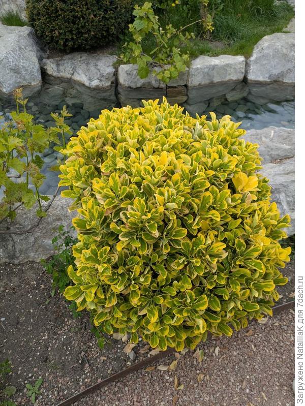 Бересклет японский, возможно, сорта с золотисто-жёлтыми листьями — «Aurea», «Ovata Aurea».