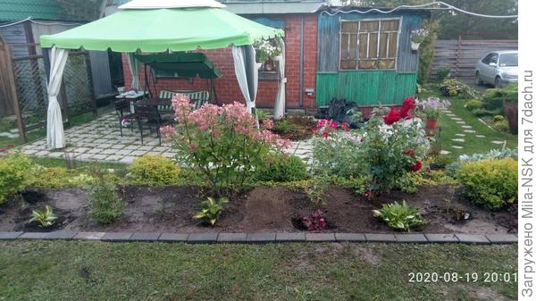 Думаю, что при таком расположении, останется место и для зоны отдыха, и для огорода, для посадок. В зоне отдыха можно соорудить небольшой навес, не уверен насчет беседки, места под нее уйдет много.
