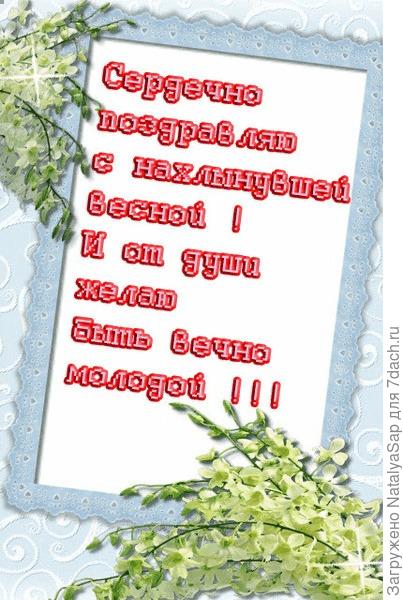 Изумительно! Мне понравилось всё! Спасибо клубу 7 дач за заботу о нас, за огромную работу администраторов, модераторов, всего коллектива! Спасибо спонсору за весенний подарок! Спасибо всем семидачникам за приятное общение, за голосование на конкурсе!