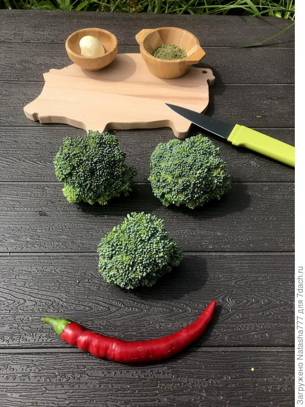 Вес головок этой замечательной брокколи составляет в среднем 600-800 грамм. Хотела еще подержать ее, не срезать… чтобы посмотреть, на что она способна. Поэтому оставила несколько кустиков — пусть набирает вес. В этом году какое-то запредельное нашествие слизней. Правда, эту капусту почти не трогают вредители, мало дырочек на листьях, а вот белокочанной достается по полной программе.