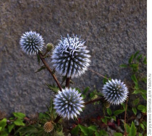 «Растопырив шелковые бровки, на высоких стеблях у реки распускается синеголовник — голубой посланник высоты».
