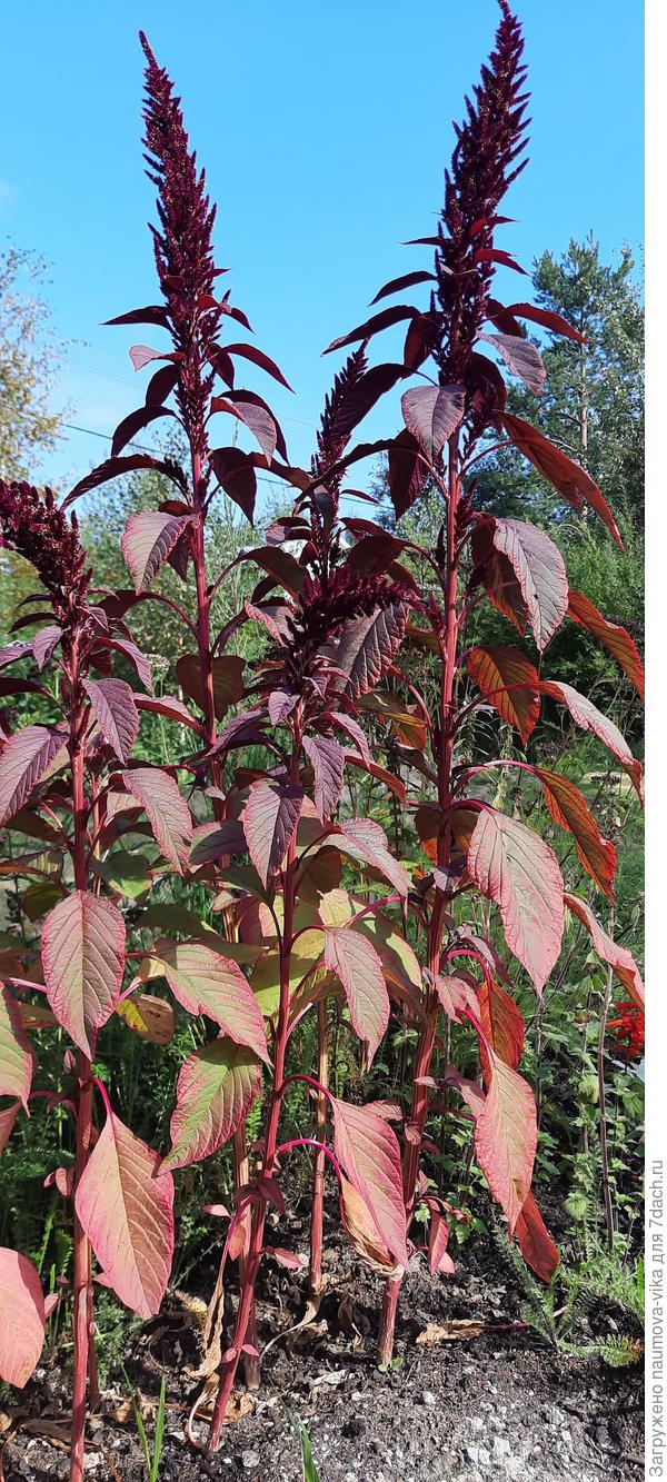 На грядку сеяла 7 июня, всходы появились достаточно быстро. В процессе роста ничем не подкармливала, но в грядку с осени был внесен перепревший коровий навоз. Уход заключался в постоянном поливе, в отсутствии дождей — в ежедневном, хотя сорт и считается засухоустойчивым, и прополке. И еще амарант болезнеустойчив. В общем и целом никаких проблем с выращиванием не было. И смотрится он очень красиво – просто украшение участка и яркий акцент в моем декоративном огороде.