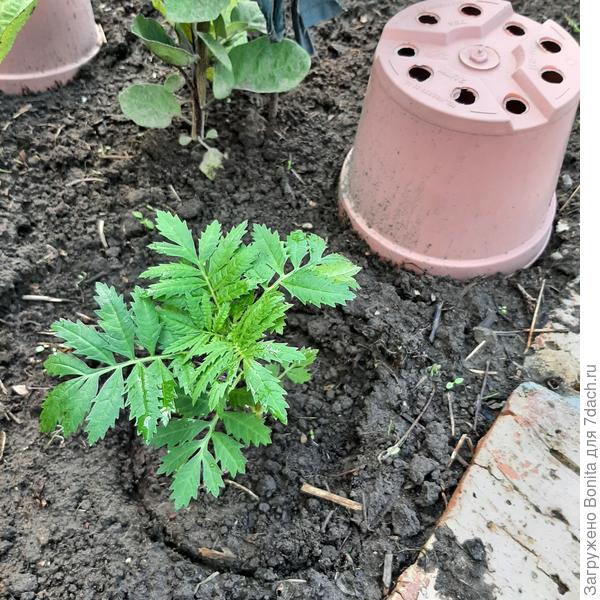 я сегодня то же пересаживала бархатцы на замену замёрзшим в июне, 10 штучек — ничем не прикрывала, у нас было +24°, ветер и дождичек,