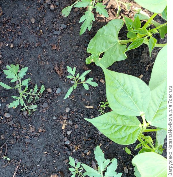 У меня четыре томата взошли между спаржевой фасолью)) в прошлом году там рос чеснок))