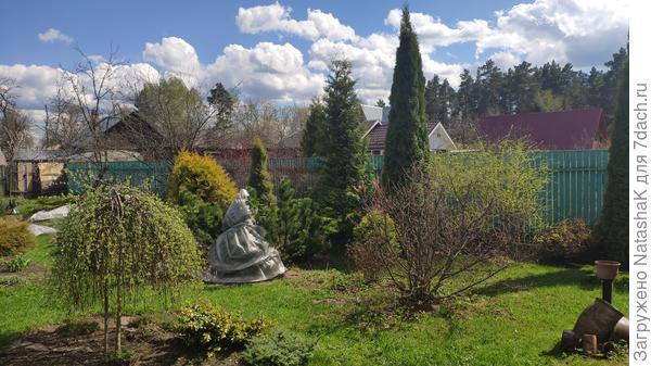 Вдалеке между высокими туями Брабанд и Смарагд кипарисовик. Естественно, сверху сгорел, укрыть было уже нереально. Так что это вполне ожидаемо