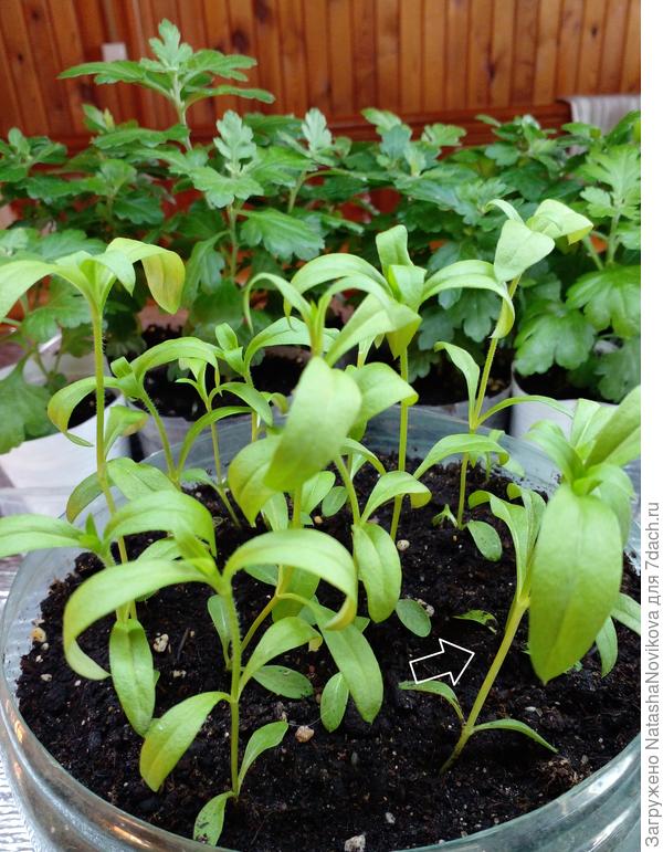 Выращивала я этот сорт флокса, как и все однолетние флоксы, через рассаду. Высевала семена в плошку, равномерно распределив их по поверхности почвы, посевы не присыпала, так как флоксы друммонда всходят только на свету. Всходы появились чрез 10 дней. После пикировки флоксы немного вытянулись, и я прищипывала растения, что позволило кустикам в клумбе стать более пушистыми.