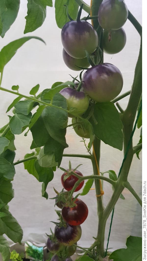 Цвет плодов менялся по мере созревания – от зеленого с синевой до тёмно-коричневого с атласным блеском. Очень декоративно смотрелся на кусте, мякоть сочная, не водянистая, красная. К сожалению, не все фото этого томата сохранились.