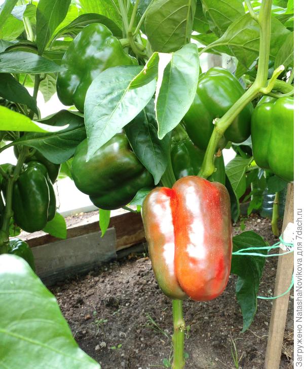 Завязывались и спели перчики почти одновременно. Но в первых числах августа я сняла почти половину урожая в технической спелости, чтобы разгрузить кустики от плодов.