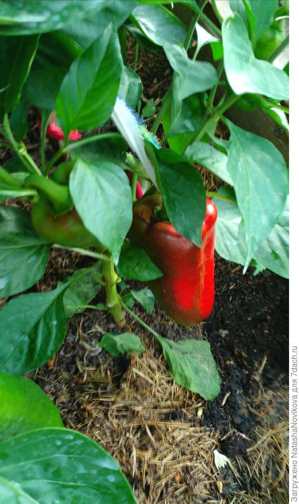 С наступлением тепла землю под перцами мульчировала скошенной травой (для сохранения влаги в почве).
