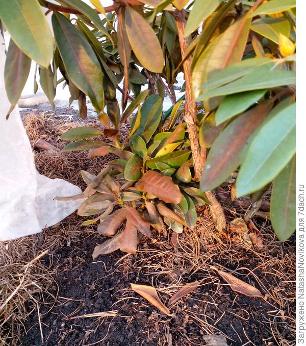 а на земле то лёд ещё был под мульчёй, и он не сразу оттаял от этого «кипятка»