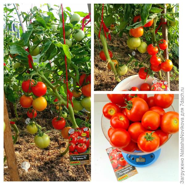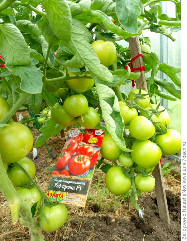 При этом кусты томатов «Ред принц» были отлично нагружены зелеными плодами. В каждой кисти наливались и спели от пяти до семи томатов.