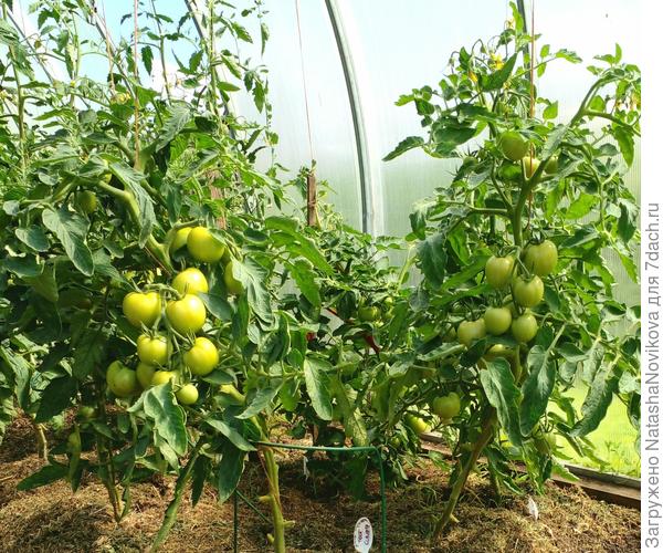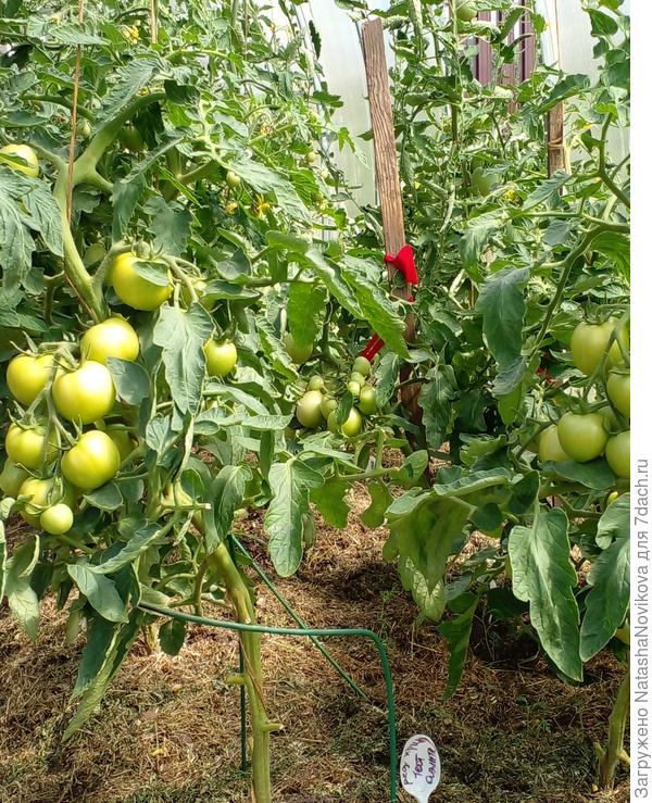 Выращивала я этот гибрид в теплице из поликарбоната вместе со всеми томатами. Место расположения – полное солнце, условия выращивания обычные для томатов. Земля в теплице удобрена биогумусом и листовым перегноем.