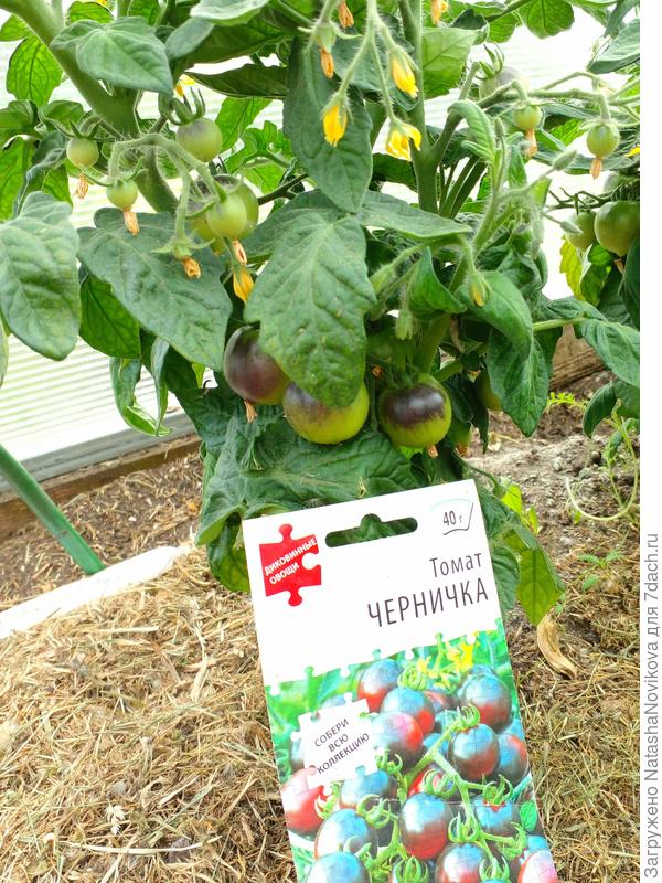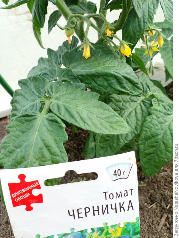 Цветение, завязывание плодов и налив томатов у «Чернички» происходили одновременно. Высота кустиков составляла от 45 см до 50 см.