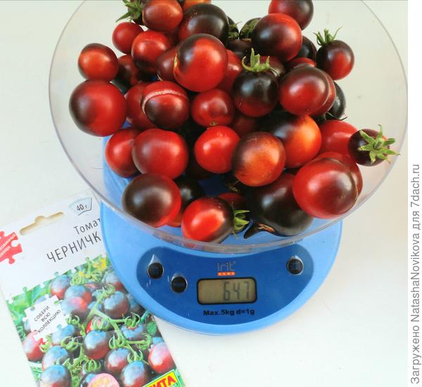 Итого вес собранных с шести кустиков томатов «Черничка» составил 6 килограммов 450 граммов.