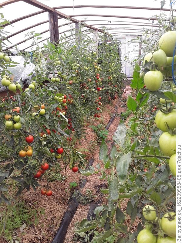 И ещё, первый раз у меня такое, на втором фото, в правом углу, зелёная гирлянда. Завязалась по 4-5 штук, тоже 9 кистей, простояла всё лето и до сегодняшнего дня и… ни один помидор не созрел.