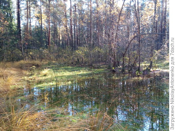 Из живых существ встретилась чёрная страшная лягушка с мускулистыми, непомерно длинными передними лапами. Глухари и какая-то большая серая птица близко не подпускают.