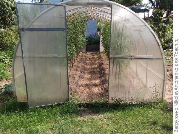 соседи высаживают помидоры и устанавливают теплицу