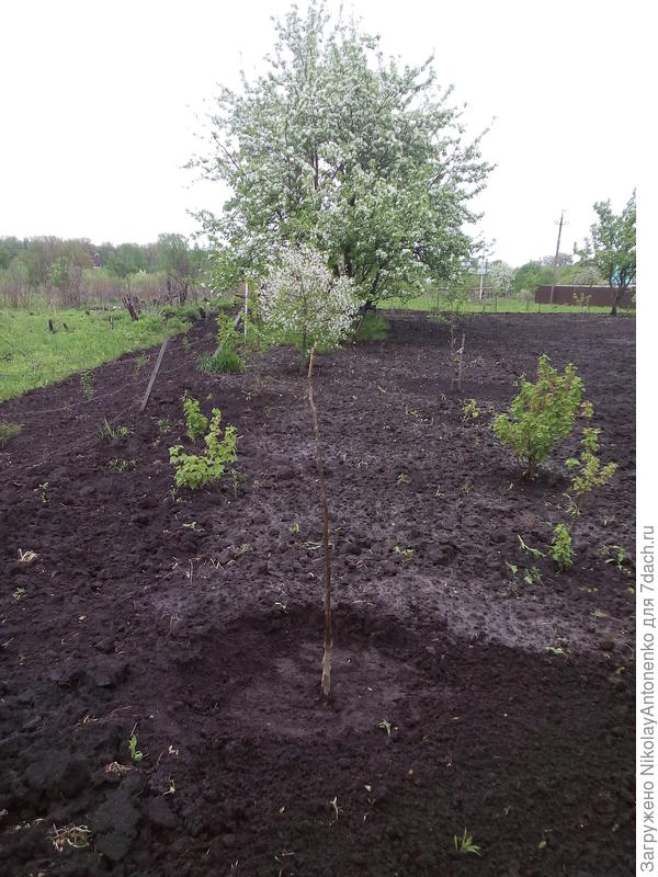 Участок огорожен проволокой (которую тоже воруют вместе со столбиками), докучают бродячие собаки, зимой прибегают зайцы. В прошлом году высадил живую изгородь — 50 саженцев подвоя боярышника, получилось через 2 м. Если примутся в будущем стриженные веточки, лет через 15-20 при надлежащем уходе разрастётся в плотную стенку. Да-да, почему-то продавец рекомендовала именно яблоню, но я выбрал саженец из мешка с грушей (он на фотографии в правом нижнем углу). Не обратил внимание на название — дело было на рынке, там такая обстановка, что всякий раз несёшься оттуда без памяти.