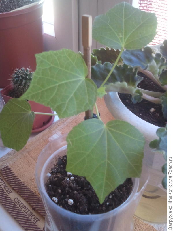 Чтобы получить цветение гибискуса кислого в открытом грунте, его семена высевают за 6-8 недель до посадки его в открытый грунт (высаживают в конце мая). Посеяли его вы рано, вот поэтому он испытывает недостаток света и вытягивается. Что вам сейчас надо сделать? У вашего сеянца еще первые семядольные зеленые листочки, когда появится первый настоящий лопастный лист, нужна пикировка — пересадка с прищипкой кончика корня. Верхушку побега пока спешите прищипывать, вы это сделаете после пикировки, когда сеянец достигнет высоты более 30 см, т.к. срезав верхушку (это делается однократно) длиной 10-20 см, вы ее можете использовать на черенкование (черенок дает хорошо корни в воде). Обращаю ваше внимание еще раз: верхушку обрезаем только 1 раз, т.к. обрезка задерживает цветение. Конечно, хорошо бы в зимние месяцы растения досвечивать. Если такой возможности нет, то поставьте горшок с растением на подоконник южного окна.