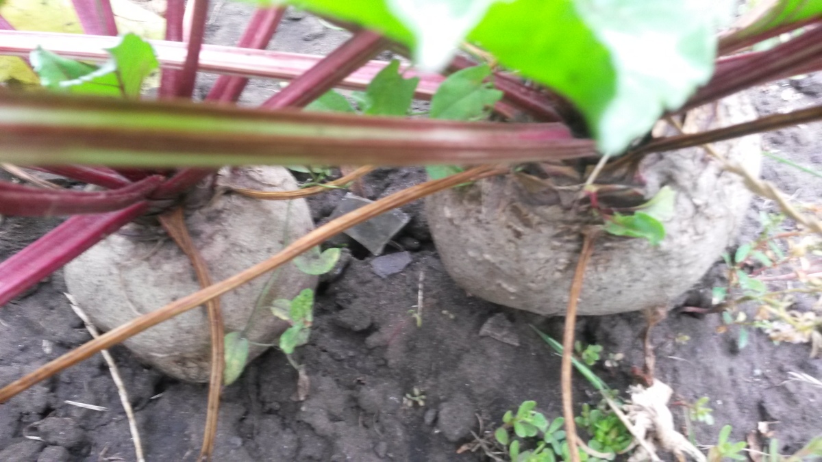 Свекла выросла вдоль борозды. Крупнее, чем в общей грядке.