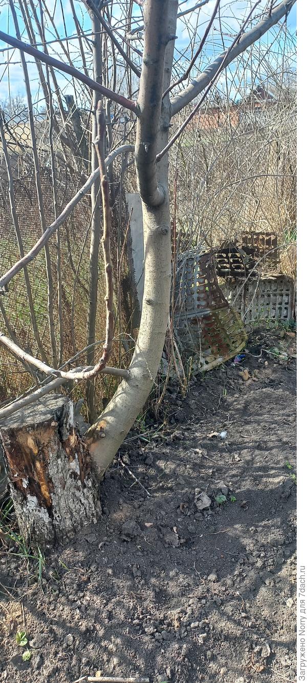 Первое. Обрезать сухой пенек на перевод на боковое ответвление, которое идет к тюльпанам.