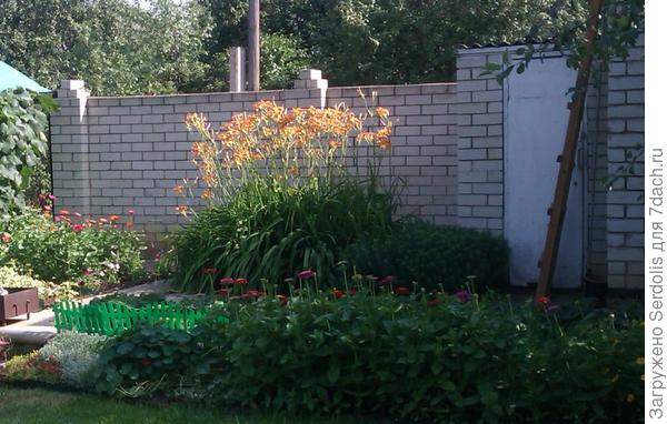 А вообще, вопрос интересный. Поискала в интеренете варианты подзаборного оформления длинного узкого участка. Примеры того, что и как разрастается: