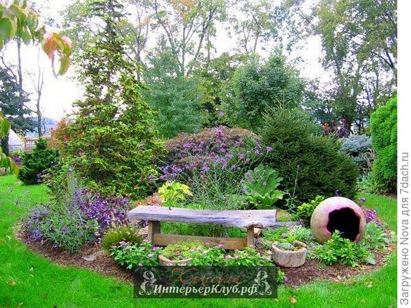 Думаю, что этот маленький уголок сада можно превратить в зеленую зону отдыха, совместив в ней одновременно несколько функций: ландшафтного уголка и отдыха с успокаивающим журчанием воды.