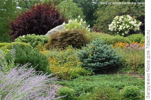 2. Навести красоту на пустующем участке с помощью декоративных кустарников, хвойных растений и злаков.