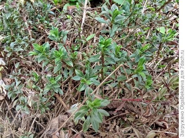 Хорошо перезимовала лаванда. В прошлом году ее веточки отсохли, живые почки сохранились только у корней. Вторая зимовка прошла под толстым слоем снега. Все веточки живы, появились новые листья.