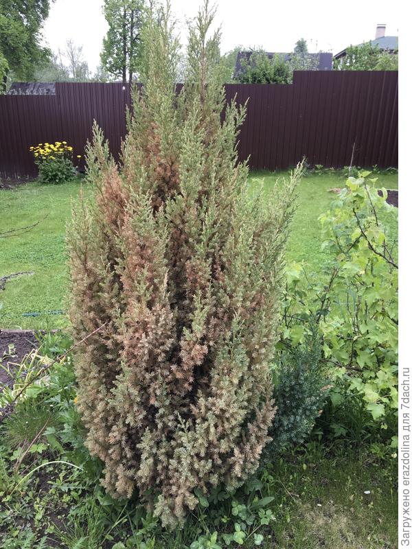 Я два года назад, начитавшись, что туи, бывает, страдают грибковыми заболеваниями, подумала, может и у меня они больны. Обрабатывала их несколько раз бордоской смесью.