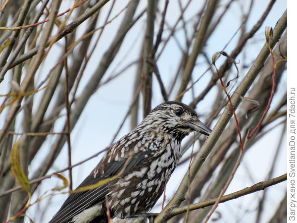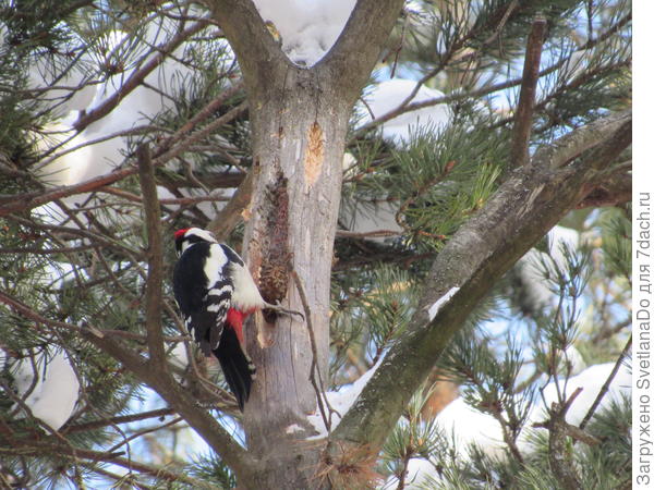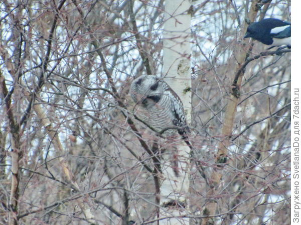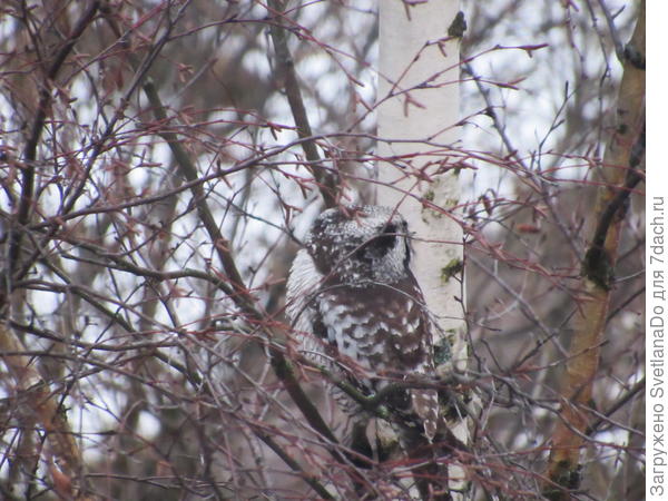 вот она на окраине нашей деревни рябиной пробавляется, а до этого среди тающего снега на улице что-то в гравии выискивала.